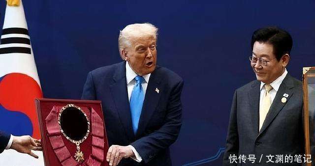李在明上任不久,就面临了如此棘手的外交任务。他是通过民主党大选获胜上台的,背景为劳工律师,政策偏向经济公平以及推动与朝鲜的和解。然而,现实是,韩国被夹在中美两大国的中间,几乎动弹不得。当特朗普到达时,李在明立即被授予韩国的最高荣誉——大勋章,成为首位获得此奖项的美国总统。而特朗普还赠送了李在明一顶新罗金冠的模型,看似是文化交流的象征,但实际上,李在明这样做是为了给特朗普面子,同时也希望借此缓和两国之间的贸易摩擦。